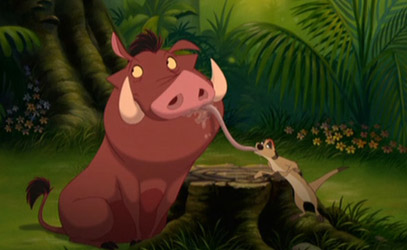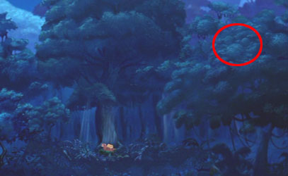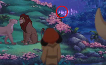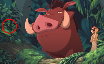 小辛巴終於留在森林中,和彭彭丁滿一同生活,當鏡頭拉遠,可以在旁邊大樹上找到一個由濃密樹叢所排出的米奇頭。
