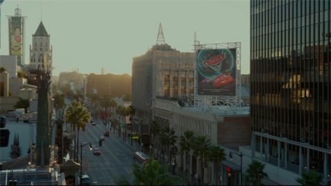 迪士尼【布偶歷險記】故事背景大多發生在洛杉磯,在洛杉磯街景中有出現皮克斯【Cars 2:世界大賽】的電影看板。(網友Jenny 提供)
