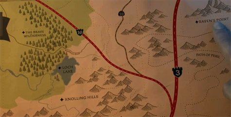 片中這個世界觀的地圖中,有一片森林的名字叫“Brave Wilderness" 這個名詞當然就是取自【勇敢傳說】(Brave)電影。(網友tony stark 提供)