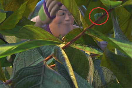 在本片中玩具們穿越大馬路那段的一開始,當巴斯光年推開樹叢的那一幕,注意他推開的那樹枝,上面居然有出現【蟲蟲危機】裡的毛毛蟲哈其林喔!